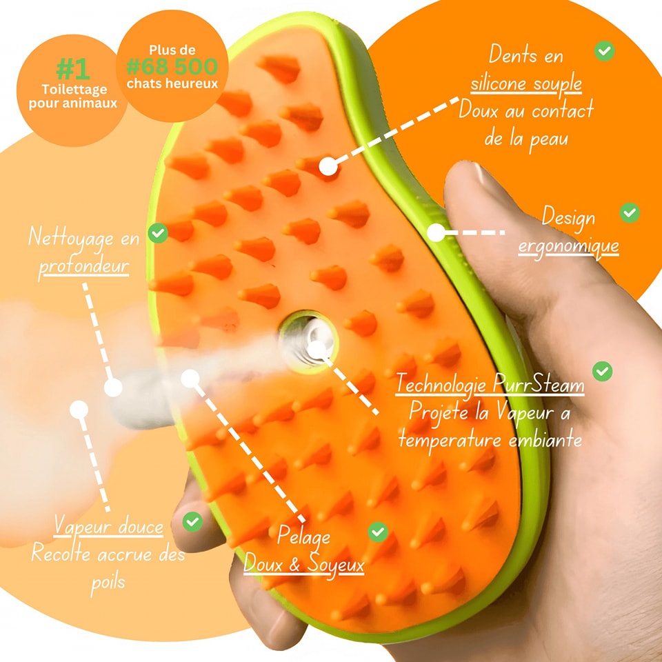 Give your furry friend the ultimate grooming experience with our innovative steam brush designed for comfort, care, and convenience.